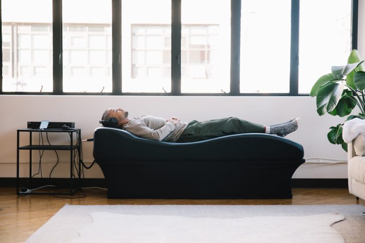 - A session is a simple process in which the clothed client reclines on a contoured table while listening to music through headphones.